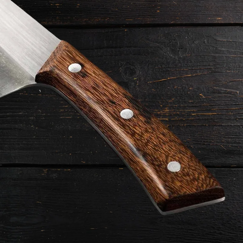 This 8 inch chef knife is designed for precision cutting and everyday kitchen performance. The sharp stainless steel blade delivers clean, efficient slicing for meat, vegetables, and herbs. Its versatile design allows it to function as a chef knife, butcher knife, skinning knife, and boning knife. The durable blade maintains sharpness for consistent cutting results. A natural rosewood handle provides a comfortable and secure grip during extended use. The balanced construction improves control and reduces hand fatigue. Suitable for home cooks and professional kitchens alike, it handles a wide range of food preparation tasks. Ideal for chopping, slicing, trimming, and carving with accuracy. Easy to clean and maintain for long-term durability. This practical kitchen knife is an essential tool for efficient food preparation.