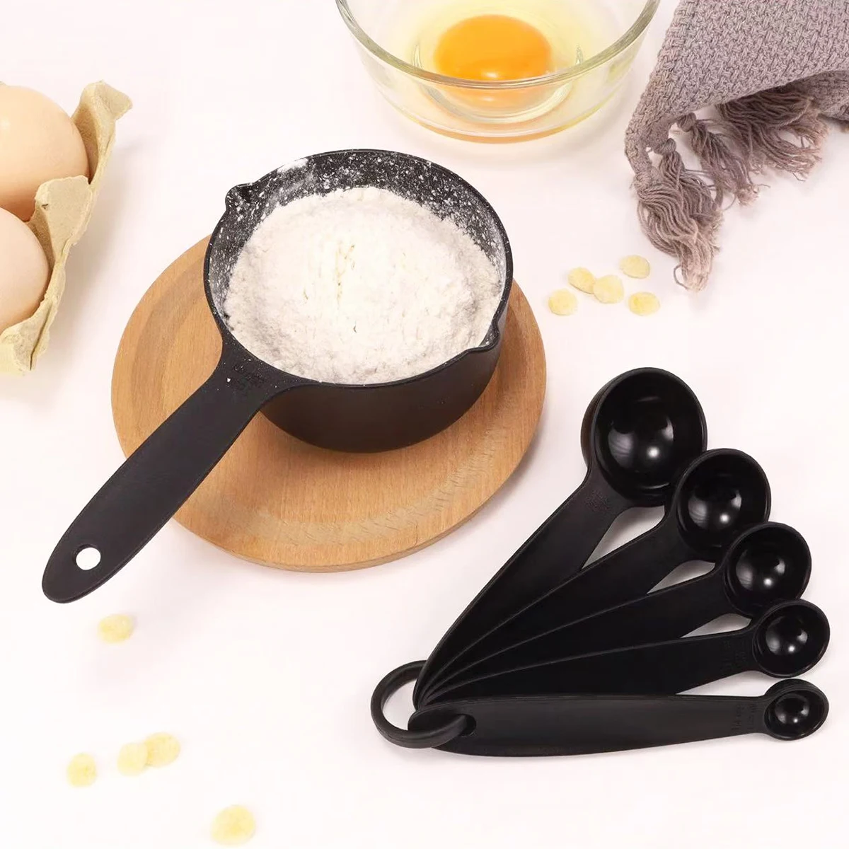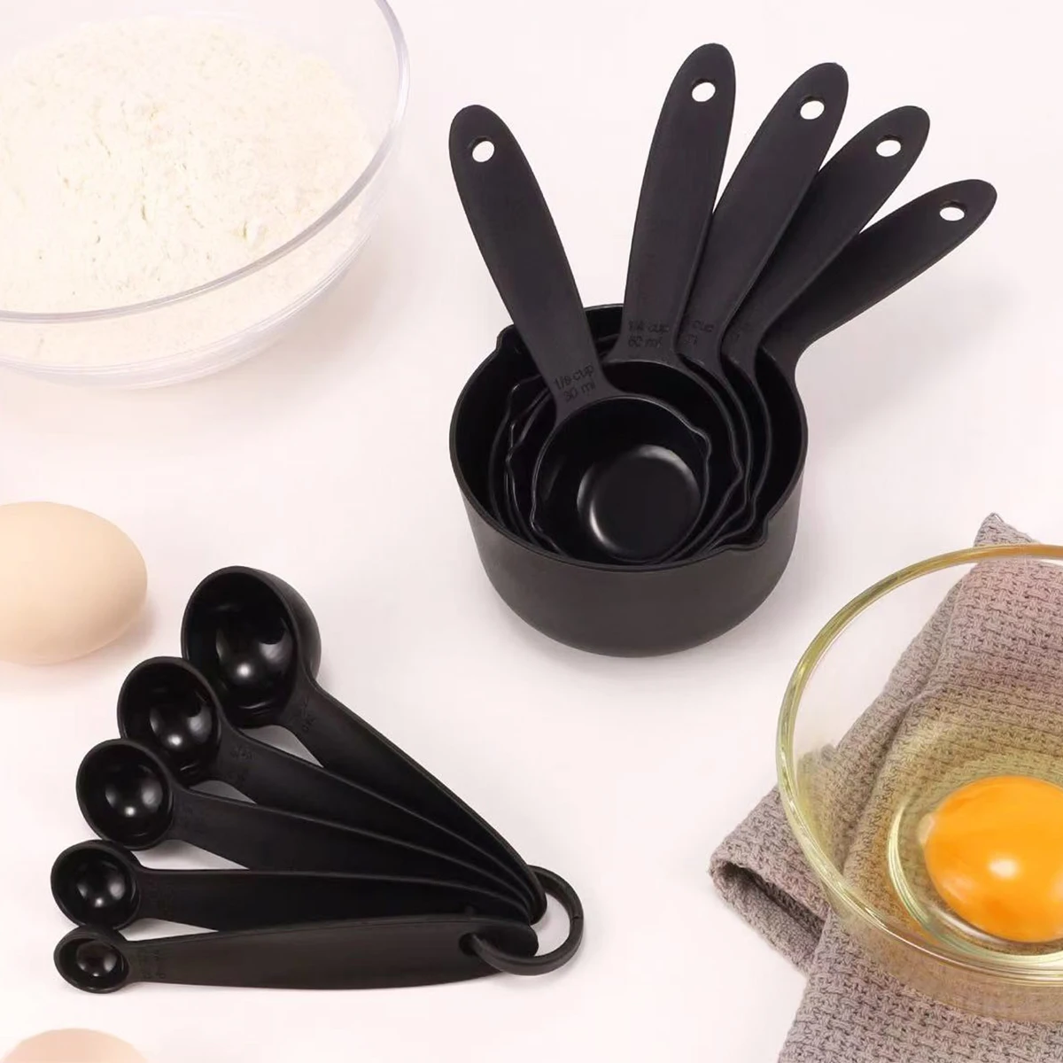 This measuring cup and spoon set is designed for accurate and convenient home baking. Made from durable plastic, it is lightweight and easy to handle during food preparation. The eagle beak spout allows smooth and controlled pouring without spills. Clear graduated markings ensure precise measurement of liquids and dry ingredients. The set is available in 5PCS or 10PCS options to meet different kitchen needs. These tools are ideal for baking, cooking, and daily meal prep. The ergonomic design offers a comfortable grip for effortless use. Smooth surfaces make the cups and spoons easy to clean after use. Compact sizing allows simple storage in any kitchen drawer. This measuring set is a practical and essential tool for every home baker.