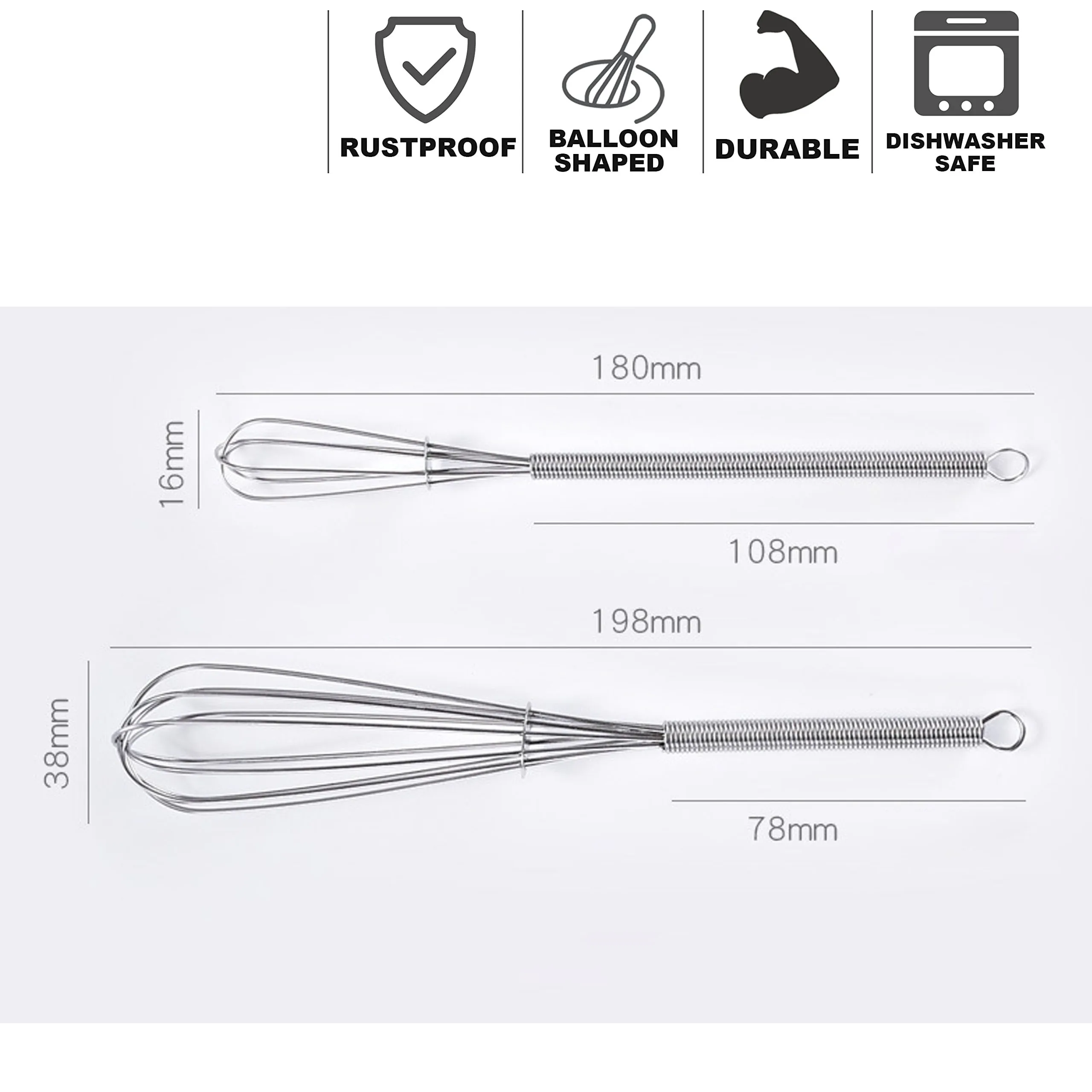 This wire whisk set includes 5-inch, 7-inch, and 8-inch stainless steel mini whisks for versatile kitchen use. Made from durable stainless steel, each whisk resists rust and maintains shape over time. The wire loops are designed for efficient blending, beating, stirring, and whipping of ingredients. Lightweight and ergonomic, the whisks are easy to handle and provide precise control during mixing. Ideal for eggs, cream, sauces, and batter, they support a variety of cooking and baking tasks. Their compact size makes them perfect for small bowls or large mixing tasks alike. The smooth, polished wires allow easy cleaning and maintenance. Suitable for home cooks and professional kitchens, they deliver consistent performance. Durable construction ensures long-lasting use for everyday food preparation. This whisk set is an essential addition to any kitchen utensil collection.