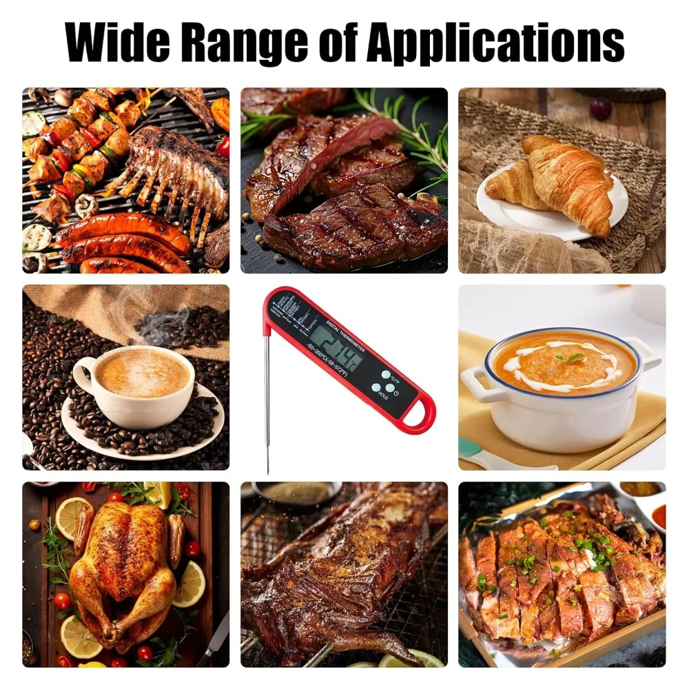 This waterproof digital meat thermometer delivers fast and accurate temperature readings for perfect cooking results. The instant read probe provides precise measurements within seconds, helping prevent overcooking or undercooking. Designed for grilling, BBQ, roasting, and everyday kitchen use, it ensures food safety and consistency. The waterproof construction allows easy cleaning under running water. A clear digital display makes temperature readings simple to see at a glance. The stainless steel probe is durable and resistant to high heat. Its compact and lightweight design makes it easy to store or carry for outdoor cooking. User-friendly buttons allow quick switching between measurement units. Ideal for meat, poultry, seafood, and baked goods, it supports versatile cooking needs. This digital thermometer is a reliable BBQ accessory and essential kitchen tool.